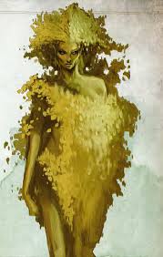 The treebound dryads are limited to the land that their tree is in, and work with other woodland guardians to protect nature. Dryads are really nature based, so they don’t create much, and mostly offer guidance with the area, and protection from beasts. Dryads may be shy, though they can have curiosity with a humanoid they find attractive and may charm them.